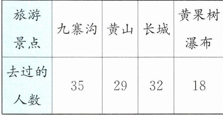 2. “读万卷书,行万里路”。下面是二(1)班同学暑假去过的旅游景点的人数统计。