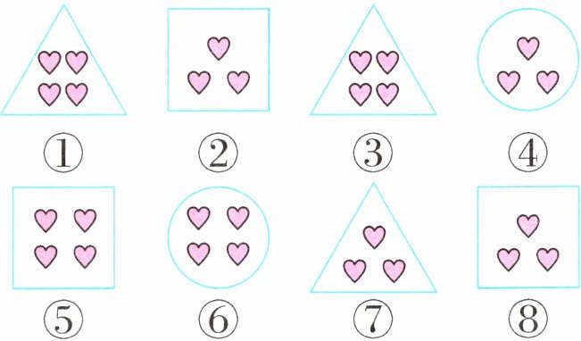 分法二:先按♥的个数分,再按图形的形状继续分。