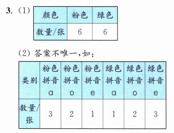 解析:按照颜色可以分成两类,继续按拼音分,每种颜色可以分成3类;还可以按声调分,每种颜色可以分成4类。