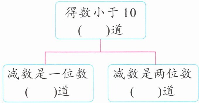 (2)得数小于 10 的算式中有多少道减数是一位数的?