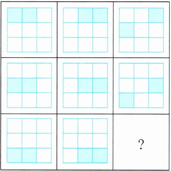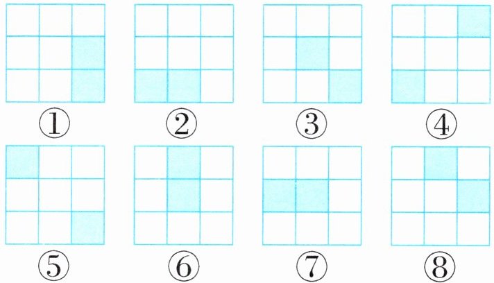 )。答案:7. ⑤ 解析·观察发现,第一个图中两个蓝块向右移动一格就变成第二个图,第二个图中的两个蓝块又向右移动一格,有一个蓝块被挤到下一行的第一个,就变成了第三个图,按照这样的规律,第三行的第三个图应该选择⑤,有一个方块会被挤到第一行的第一个。