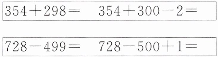 (1)我发现:一个数加上或减去一个接近整百的数时,可以把接近整百的数看成整百数来计算。如果多加了几就要减去(