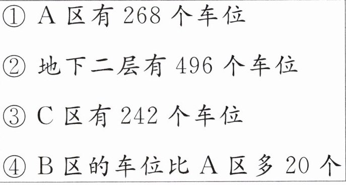 11. 新趋势 结构补充 某停车场有两层。地下一层有 A、B 两个区,地下二层有 C、D 两个区。想要求出地下一层有多少个车位,需要的信息是(
