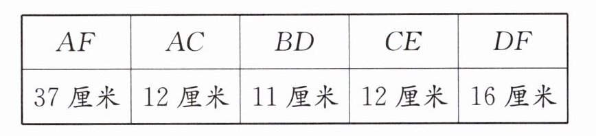 4. 点 A、B、C、D、E、F 按此顺序排列在一条直线上,各线段长度如下表,则线段 AD=(