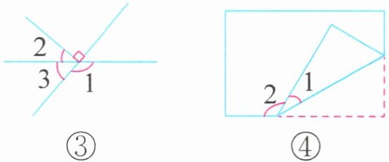 )$^{\circ}$。(4) 如图④是一张长方形纸折起来后的图形。其中 $∠2 = 120^{\circ}$,$∠1 =$ (