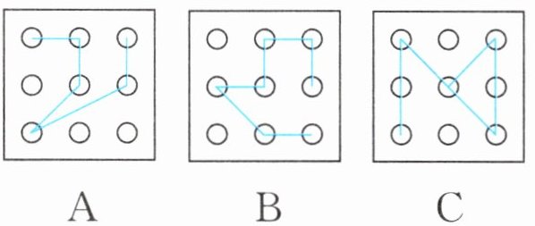 (2) 小明爸爸的手机解锁用的是图案密码,密码是下面三幅图中的一幅,并且图中有 3 个锐角和 2 个直角。小明爸爸的手机密码是图案(