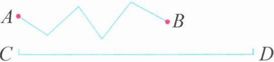 答案:6. 方法一:用直尺分别量出AB每一小段的长度,再把每一小段的长度相加,相加的和与CD的长度相比,得出结果。方法二:可以用圆规量。