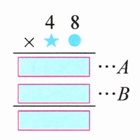4. 新趋势 算理理解 如图是笔算两位数乘两位数的计算过程。第一步得数是A,第二步得数是B,A(