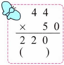$\begin{array}{r} 44\\ ×50\\ \hline 220\end{array}$