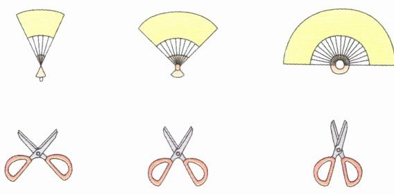 (2)张开的剪刀慢慢合拢,张开的角度越来越(