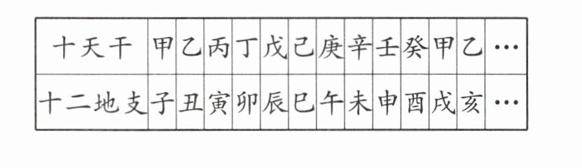 )年。答案:7. 乙巳 解析:2025年与1949年相差2025 - 1949 = 76(年);天干是十年为一组循环,76年里有7个10年还余6年,循环从“庚”开始为第1年,往后数到第6年是“乙”;地支是十二年为一组循环,76年里有6个12年还余4年,循环从“寅”开始为第1年,往后数到第4年是“巳”。