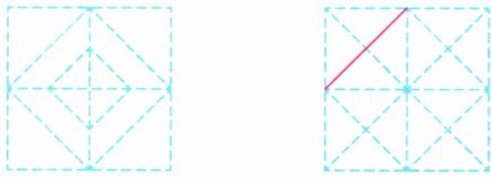 6. 把下面左图中与右图实线平行的虚线都描成实线,把右图中与实线垂直的虚线都描成实线。