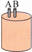 8. 新素养 数感 如图,两根铁棒竖直插入木桶中,铁棒 A 露出的长度占总长度的$\frac{1}{3}$,铁棒 B 露出的长度占总长度的$\frac{1}{5}$,两根铁棒露出的长度相同,铁棒(