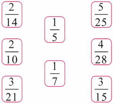 6. 下面分数中,哪些是$$\frac{1}{5}$$的等值分数?哪些是$$\frac{1}{7}$$的等值分数?连一连。