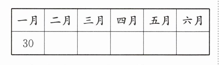 6. (1) 某地去年一月份降水量是30毫米,以后连续4个月的降水量都比前一个月增加5毫米。六月份的降水量比五月份降水量的2倍少26毫米。根据以上描述,填写下表。(单位:毫米)