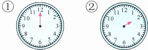 (1) 白天钟面上的分针所在位置如图①,若时针和分针成60°角,则钟面上的时间是(