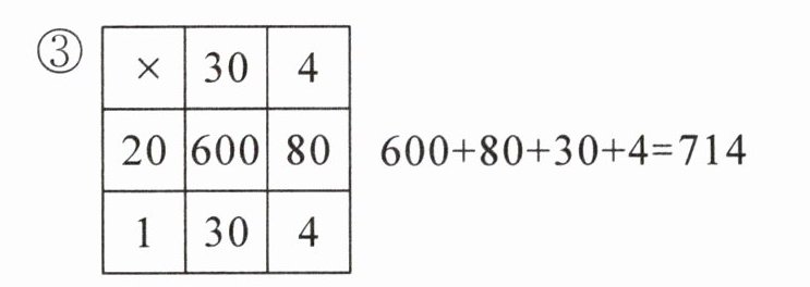 3. 计算$34×21$,同学们用了下面三种不同的方法。