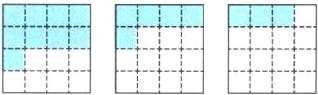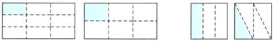 2. 先在正方形上分一分,涂一涂,表示出各图的$\frac{9}{16}$、$\frac{5}{16}$、$\frac{3}{16}$,再比较它们的大小。(6分)