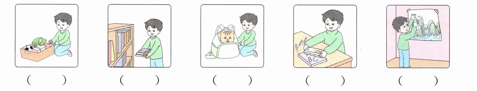 三、(2025·徐州云龙区期中)妈妈要求东东整理他的房间,根据对话用数字给下列图片排序。