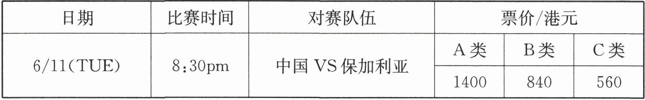26. (8 分)2024 世界女排国家联赛于 6 月 11 日至 6 月 16 日在中国香港奥体中心举行,首日比赛,中国队以 $3:0$ 战胜保加利亚,取得本站开门红,为女子排球的历史篇章又添上了浓墨重彩的一笔. 6 月 11 日该项赛事票价(港元)如下表: