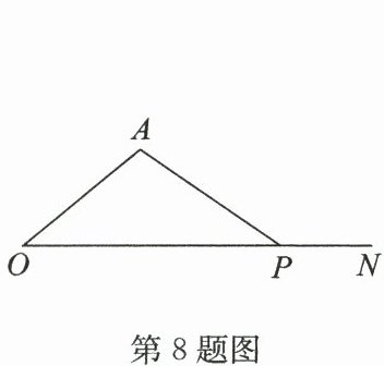 8.(2025·宿豫区期中)如图,$ P $是射线 $ ON $上一动点(不与点 $ O $重合),$ ∠ O = 40^{\circ} $. 若$ △ AOP $是钝角三角形,则$ ∠ A $的取值范围是(