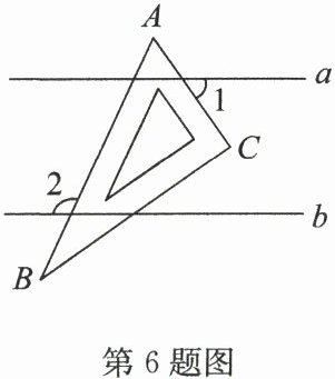 6.(2024·宿豫区期末)如图,直线 $ a // b $,一块含 $ 60^{\circ} $角的直角三角尺 $ ABC(∠ A = 60^{\circ}) $按如图所示放置. 若 $ ∠ 1 = 55^{\circ} $,则 $ ∠ 2 $的度数为(