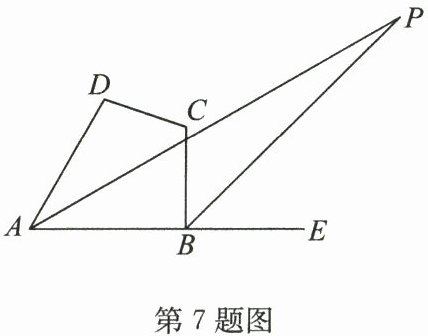 7. 如图,在四边形 $ ABCD $中,$ ∠ DAB $的平分线与$ ∠ ABC $的外角平分线相交于点 $ P $,且$ ∠ D + ∠ C = 210^{\circ} $,则$ ∠ P = $(