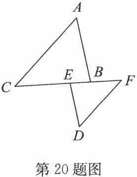 答案:20.证明:因为AC//FD,所以∠C = ∠F.