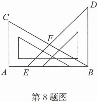 8. 如图,一副三角尺按如图所示放置($∠ C = 60^{\circ},∠ D = 45^{\circ}$),则$∠ DFB = $
