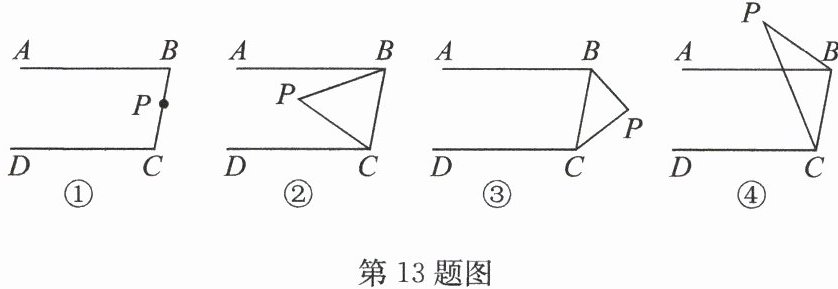 13. 解: (1) $∠ ABP + ∠ DCP = ∠ BPC$.