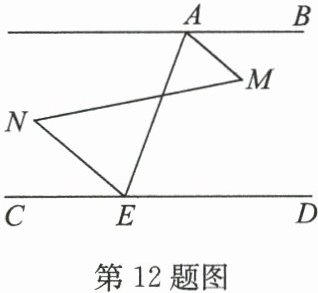 12. (10 分)如图,直线$AB$,$CD$被直线$AE$所截,直线$AM$,$EN$被$MN$所截. 请你从以下三个条件:①$AB// CD$;②$AM// EN$;③$∠ BAM=∠ CEN$中选出两个作为已知条件,另一个作为结论,得出一个正确的命题.