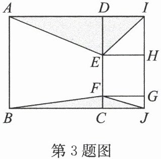 3. (2024·宜兴期末)如图,点 $ D,C,H,G $ 分别在长方形 $ ABJI $ 的边上,点 $ E,F $ 在 $ CD $ 上. 若正方形 $ ABCD $ 的面积等于 20,图中阴影部分的面积总和为 8,则正方形 $ EFGH $ 的面积等于(