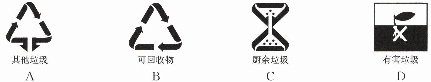 2. 下列四个垃圾分类标识中,其文字上方的图案属于轴对称图形的是 (
