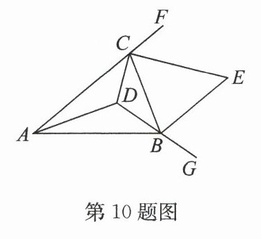 10. 如图,在$ △ A B C $中,$ ∠ C A B = n^{\circ}, ∠ C B A = m^{\circ}, D $是$ △ A B C $三个内角平分线的交点,延长$ D B $到点$ G, ∠ F C B $与$ ∠ C B G $的平分线交于点$ E $.若$ B E // A C $,则$ \frac{4}{5} n + \frac{3}{5} m = $