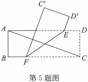 5. 如图,把一张长方形纸条$ ABCD $沿$ EF $折叠,$ C,D $两点分别落在点$ C^{\prime}, D^{\prime} $处.已知$ ∠ D A C = 20^{\circ} $,且$ C^{\prime} D^{\prime} // A C $,则$ ∠ A E F $的度数为(