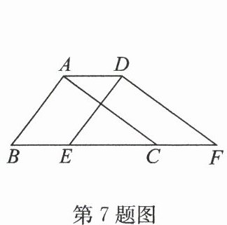 7. (2024·秦淮区期中)如图,在$ △ A B C $中,$ ∠ B A C = 90^{\circ}, A B = 3, A C = 4, B C = 5 $,将$ △ A B C $沿直线$ B C $向右平移2个单位长度得到$ △ D E F $,连接$ A D $.有下列结论:①$ A C // D F, A C = D F $;②$ E D ⊥ D F $;③四边形$ A B F D $的周长是16;④$ A D: E C = 2: 3 $.其中正确的结论是