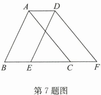 7. 如图,将周长为 7 的 $△ ABC$ 沿 $BC$ 方向平移 1 个单位长度得到 $△ DEF$,则四边形 $ABFD$ 的周长是(