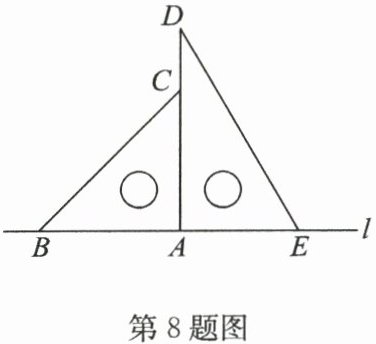 8. 如图,将三角尺 $ABC$ 与三角尺 $ADE$ 的一边 $AB$ 与 $AE$ 放置在直线 $l$ 上,边 $AC$ 与 $AD$ 所在直线重合. 现将三角尺 $ABC$ 绕点 $A$ 逆时针旋转,三角尺 $ADE$ 绕点 $A$ 顺时针旋转. 当 $AB$ 与 $AE$ 第一次重合时,两三角尺均停止运动. 在旋转过程中,下列说法不正确的是(