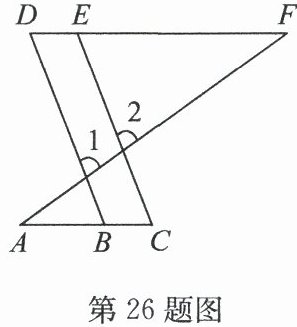 答案:26. (1) 若 $ ∠ A = ∠ F, ∠ C = ∠ D $,则 $ ∠ 1 = ∠ 2 $ 若 $ ∠ 1 = ∠ 2, ∠ A = ∠ F $,则 $ ∠ C = ∠ D $