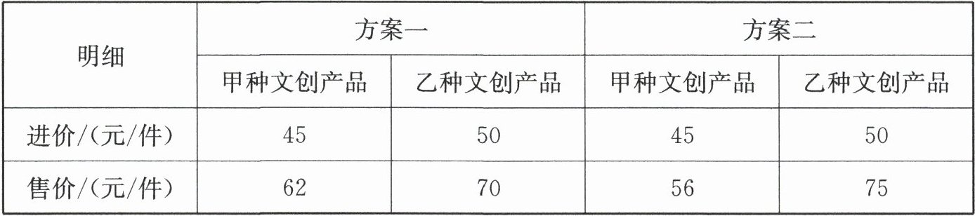 (2)某天销售甲、乙两种文创产品,要使采用方案一当天所获得的利润超过采用方案二当天所获得的利润,则甲种文创产品当天的销量至少是多少件?