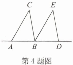 4. 如图,将三角形纸板 ABC 沿直线 AB 平移,使点 A 平移到点 B 的位置,若∠CAB = 60°,∠ABC = 80°,则∠CBE 的度数为