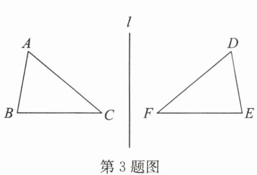 3. 如图,$△ ABC$与$△ DEF$关于直线$l$对称,若$∠ A = 60^{\circ}$,$∠ B = 80^{\circ}$,则$∠ F =$