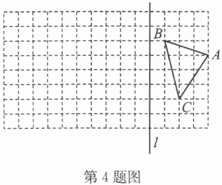 4. 如图,在由边长为 1 个单位长度的小正方形组成的 $ 8×14 $ 网格中,$ △ ABC $ 的顶点都在格点上,直线 $ l $ 与网格线重合.