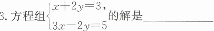 3. 方程组$\{\begin{array}{l} x + 2y = 3,\\ 3x - 2y = 5\end{array} $的解是 ______ .