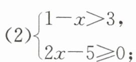 (2) $\begin{cases}1 - x > 3, \\ 2x - 5≥ 0;\end{cases}$