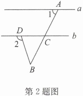 2. 如图,直线 $a// b$,$∠ 1 = 63^{\circ}$,$∠ B = 45^{\circ}$,则$∠ 2$的度数为(