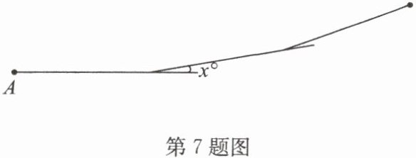 7. (教材例题变式)如图,小明从点 A 出发,前进 10 m 后向右转 $x^{\circ}$,再前进 10 m 后又向右转 $x^{\circ}$,这样一直下去,直到他第一次回到出发点 A 为止,他所走的路径构成了一个多边形,他一共走了 360 m,求 x 的值,并判断这个多边形的边数。