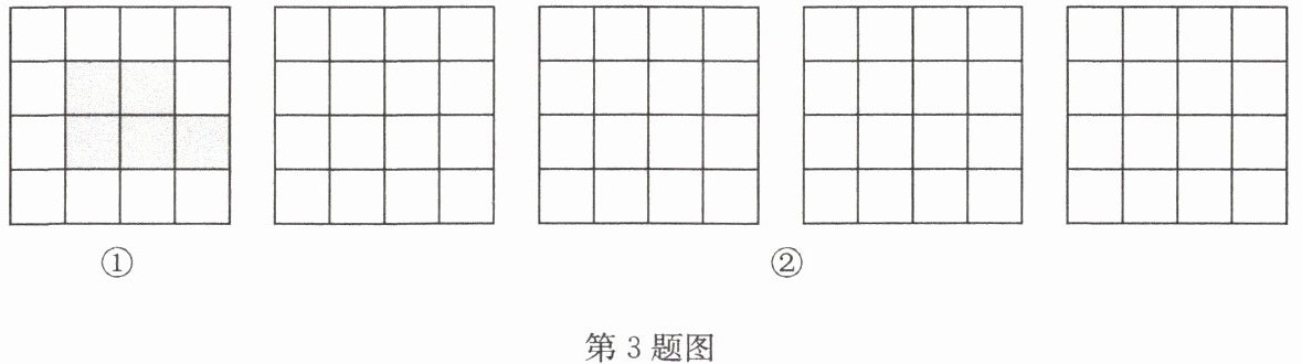 3. 在4×4的方格中有五个同样大小的正方形如图①摆放,移动其中一个正方形到空白方格中,与其余四个正方形组成的新图形是一个轴对称图形,请在如图②所示的4个网格中画出四种互不全等(完全重合)的新图形.