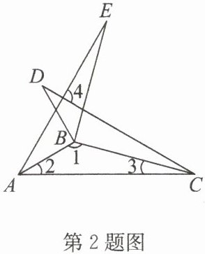 2. 如图,△ABE 和△ABC 关于 AB 边所在的直线对称,△BDC 和△BAC 关于 BC 边所在的直线对称. 若∠1:∠2:∠3=9:2:1,则∠4的度数为