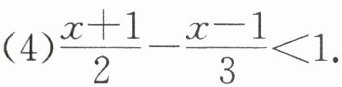 (4)$ \frac { x + 1 } { 2 } - \frac { x - 1 } { 3 } < 1 $.